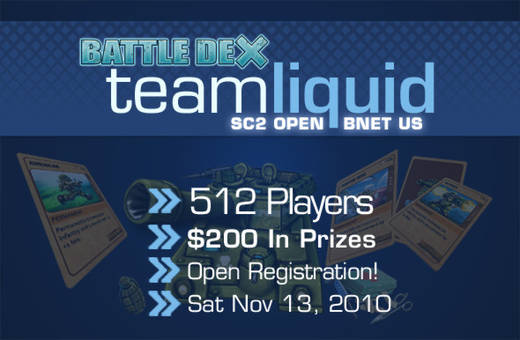 TeamLiquid a annoncé son troisième tournoi Open, le Battle Dex TL SC2 Open #3. Le tournoi est ouvert à tous et se déroulera le 13 novembre sur le serveur nord-américain de Battle.net. Donc il vous faudra un compte là-bas pour participer ce qui devrait surtout concerner nos amis francophones du Canada évidemment.